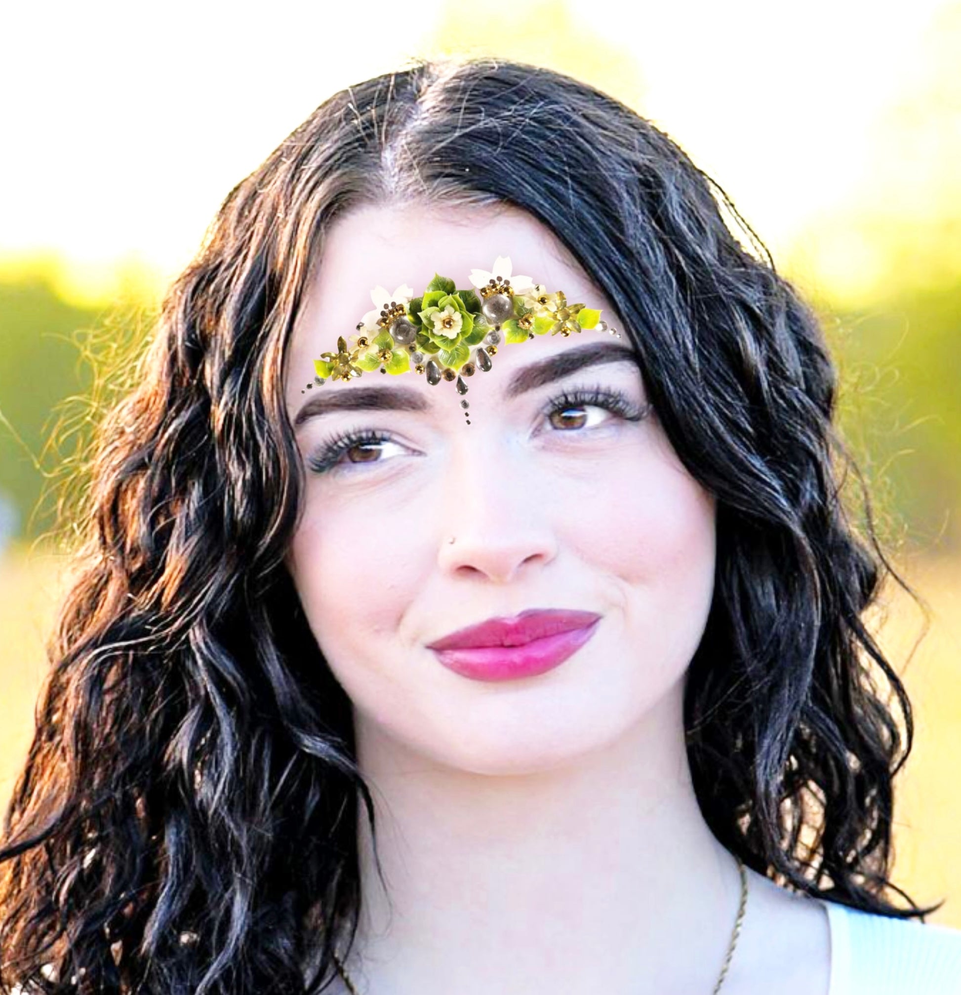 Découvrez notre diadème fleur blanche de la collection Gaïa, un accessoire unique qui sublime votre beauté et vous permet de briller de mille feux ! Composé de plusieurs strass scintillants, d’une fleur blanche, d’éléments en bois fin et de petits feuilles délicates, ce bijou est réalisé à la main, garantissant que vous portez une pièce véritablement unique.