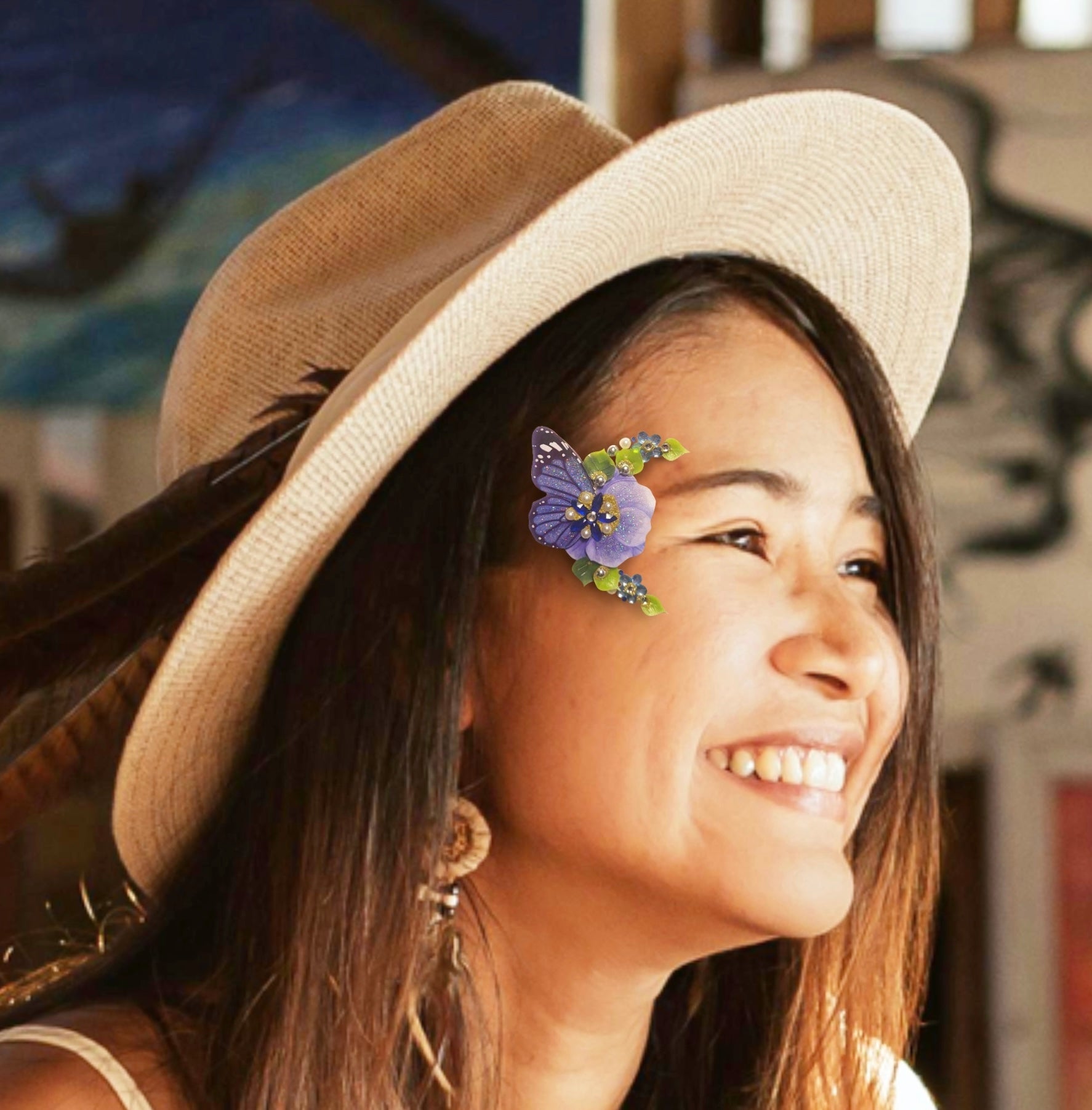 Découvrez notre Lune papillon bleu marine et fleur bleue marine de la collection Gaïa, un accessoire unique qui sublime votre beauté et vous permet de briller de mille feux ! Composé de plusieurs strass scintillants, d’une fleur blanche, d’éléments en bois fin et de petits feuilles délicates, ce bijou est réalisé à la main, garantissant que vous portez une pièce véritablement unique.